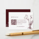 Carte D'accompagnement Détails de mariage élégant floral bordeaux Code QR