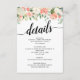 Carte D'accompagnement Détails de mariage Fleurs de pêche et de blush
