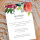 Cette carte d'accompagnement de mariage élégante présente un magnifique bouquet de dahlias à l'aquarelle associé à une typographie d'inspiration vintage. Ensemble, ces éléments créent un design rustique mais élégant qui serait parfait pour un mariage romantique à tout moment de l'année. Voir la collection pour plus d'éléments de cette suite de mariage...