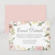 Carte D'accompagnement Détails de mariage floral de rose Élégant Blush