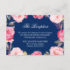 Carte de réception de mariage floral rose bleu marine.