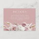 Carte D'accompagnement Détails de mariage floral rose poussiéreux et blus