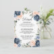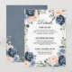 Carte de détails de mariage géométrique florale bleu poussiéreux avec des bouquets élégants de bleu poussiéreux, blanc, rose, rose pêche et feuilles d'eucalyptus vert sauge et cadre géométrique neutre à paillettes élégant. Veuillez me contacter pour toute aide de personnalisation ou si vous avez besoin d'un autre produit avec ce design.