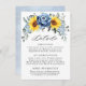 Une carte de détails de mariage floral élégant et moderne de la mi-été présente un bouquet de tournesol hydrangea & pivoines aquarelles dans des nuances de jaune, ardoise, bleu poussiéreux avec des feuilles botaniques vertes luxuriantes et eucalyptus. Veuillez trouver plus de modèles et de variations correspondants dans ma boutique "blissweddingpaperie". Et n'hésitez pas à me contacter pour une personnalisation supplémentaire ou des articles correspondants.