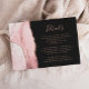 Le bord gauche de cette carte d'insertion de détails de mariage moderne élégante présente une bordure d'agate aquarelle rose blush ornée de paillettes de rose or faux. Le titre est écrit en écriture manuscrite, avec le texte personnalisable ci-dessous en police copperplate rose sur un fond sombre quasi noir. Le verso présente un design d'agate rose et or assorti.