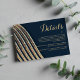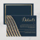 Carte de détails de luxe élégante et moderne avec paillettes géométriques bleu marine, sarcelle et or. Une carte de détails élégante avec paillettes dorées luxueuses personnalisée pour invitation de mariage est parfaite pour toute fille glamour classe et sophistiquée. Ce design est parfait pour une soirée événementielle tendance et élégante. Personnalisez ce design avec votre propre message et informations personnalisées. Tous les designs sont imprimés.