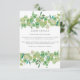Avec des feuilles d'eucalyptus délicates peintes à l'aquarelle, cette carte chic d'information pour les invités à motif botanique peut être personnalisée avec vos informations spéciales pour les invités, avec un fond de sauge argenté au verso. Conçu par Thisisnotme©