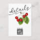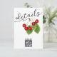 Cette carte d'enceinte à double face chic présente un design rustique avec des cerises rouges vintages et des feuilles verts à l'avant, dressés contre un arrière - plan blanc propre. L'avant présente également une calligraphie noire sophistiquée lisant "Détails." et un code QR moderne qui permet aux clients d'accéder facilement à votre site mariage. Au contraire, les détails sont écrits en simple écriture blanche classique sur un arrière - plan rouge romantique. Tout le texte, y compris le code QR numérisable, est entièrement personnalisable : remplacez-le par le vôtre ou supprimez les informations inutiles. Explorez notre collection Cherry Mariage pour coordonner des produits qui créent un look cohésif et élégant pour votre événement. Parfait pour une expérience mariage personnalisée et mémorable !