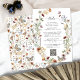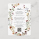 Rustic Boho Fleur sauvage Détails Carte de boîtier. Cette carte d'enceinte verticale allie charme rustique et commodité moderne, avec une couronne florale dessinée à la main dans les tons doux de rouille, d'or et de vert naturel encadrant vos détails de l'événement et un code QR pour un accès facile à votre site mariage. Placé sur un arrière - plan blanc avec un script noir gracieux, l'envers est fini avec un motif fleur sauvage de coordination qui ajoute profondeur et cohésion. Une touche élégante et utile pour la célébration d’aujourd’hui - personnalisez-la pour correspondre à votre vision.