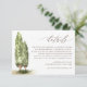 Carte de détails rustique avec des illustrations aquarelles d'arbres avec un script élégant et motif de verdure. Personnalisez en ajoutant vos textes. Vous pouvez personnaliser davantage le dos de la carte en changeant le motif en photo ou autre image. La carte de détails aquarelle est parfaite pour les événements mariage et similaires. Il fait partie de la collection "English Manor".