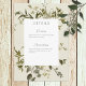 Ce beau mariage délicat détails design carte de boîtier est élégant mais simple. Il est composé d'une zone de texte blanche entourée d'une délicate végétation botanique dans un bouquet doux sur un arrière - plan vert tendre. Ce design fait partie de la collection Delicate Boho Greenery Mariage Suite créée par Simply Farmhouse Press.