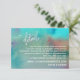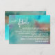 Offrez à vos invités des cartes pratiques pour les aider à se souvenir de vos détails mariages et rester dans la boucle pendant que les plans se déroulent avec cette carte artistique distinctive. Une superposition de texte frappante avec "détails" a été conçue en utilisant une police de script moderne et élégante. Utilisez les champs modèles pour customiser ces cartes de boîtier avec vos données personnelles. Le texte du support de l'espace a été ajouté à l'avant et à l'arrière, et vous pouvez choisir d'utiliser chaque champ, ou de supprimer le texte à l'arrière de la carte si vous n'avez pas besoin de cet espace. Les deux côtés ont été recouverts d'un lave abstrait aquarelle aux teintes colorées si variées qu'elles comprennent non seulement crème et turquoise et vert mais aussi bleu, violet et une pointe de rouge vif. N'hésitez pas à contacter si vous avez des demandes spéciales. D'autres pièces présentant ces éléments design sont disponibles dans la collection. N'hésitez pas à demander si vous avez des demandes de coordination de pièces non encore incluses. Disponible aussi dans une taille plus petite. // 32 //