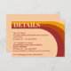 Coloris rétro vintage classique les années 70 avec des lignes rayées ondulées arc incurvées mariage détails carte boîtier. Design cool avec des couleurs hippie crème, orange et rouge. Personnalisez-le avec les détails de votre événement.