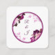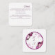 Elégante carte d'enceinte de détails de mariage avec un design art numérique étonnant avec un cercle double doublé, violet foncé ou magenta sur un arrière - plan blanc immaculé. Accentuée par de délicates fleurs de pivoines blanches et violettes foncées dans les coins et de subtils sprigs en fleurs de cerisier, cette carte ajoute une touche de sophistication et de romantisme à votre papeterie mariage. Parfait pour partager les détails mariages essentiels avec style et grâce.
