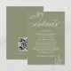 Boho Sage Minimal Leaf Élégante Calligraphie Détails Mariage Carte de boîtier avec QR Code Scan.