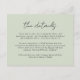 Ces cartes de boîtier mariages simples et élégantes sont dotées d'une élégante lecture de typographie, "les détails" en noir sur un arrière - plan de couleur personnalisé (montré en vert sauge clair). Le fond est décoré de feuilles de bananier, idéal pour un mariage tropical ou à thème de plage !