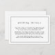 Carte de boîtier mariage simple avec un design simple avec le titre "Détails Mariage" dans une police d'écriture et une fine bordure noire, sur un arrière - plan blanc. Ce design simple et moderne conviendra à un couple minimaliste disposant d'une mariage décontractée. Utilisez ces cartes d'enclos pour indiquer l'itinéraire et tout autre détail important que vos invités pourraient avoir besoin de connaître, comme l'hébergement à l'hôtel, le stationnement, les informations sur la navette, etc.