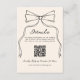 Élevez votre fête avec cette carte de boîtier Qr Code Personalized Hand Drawn Bow Old Money Détails Mariage. Parfaitement conçu pour compléter vos invitations de mariage, ce morceau allie élégance intemporelle et confort moderne. Idéal pour des idées de faire-part de mariage, des invitations do-it-yourself mariage et un style de suite faire-part de mariage complet. Concordance polyvalente pour cartes faire-part de mariage, invitations de mariage, idées et modèles faire-part de mariage, il se marie magnifiquement avec des invitations de mariage dessinées à la main, des invitations de mariage décalées, mariage italien, mariage noir et blanc, et un thème de mariage d'argent ancien.