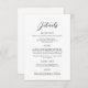 Cette carte de détails mariage a un design propre et élégant avec du texte noir sur un arrière - plan blanc. Un mélange de polices de script et de serif apporte une touche de sophistication, tandis que la disposition est soigneusement organisée en sections pour faciliter la lecture.