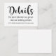 La carte d'information "Détails" mariage moderne présente un schéma moderne en noir et blanc avec une typographie manuscrite de calligraphie audacieuse et ludique avec des détails de défilement élégants. Personnalisez le texte personnalisé décontracté mais élégant avec votre site mariage.
