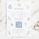 Faites ressortir vos invitations de mariage avec cette carte de Mariage QR Code Endoor personnalisée Main Drawn Blue Coastal Details. Parfait pour les mariage bleu poussiéreux, le thème bleu mariage ou le mariage bleu clair, cette carte ajoute une touche fantaisiste à votre mariage côtier. Doté de coquillages et de détails inspirés de l'océan, il est idéal pour les amoureux de mariage sur la plage et des idées de mariages côtiers. Un mélange d'invitations de mariage excentriques, de cartes de faire-part de mariage uniques et d'invitations de mariage dessinées à la main, idéal pour les couples modernes à la recherche de modèles élégants et d'idées d'invitations de mariage créatives. Un mariage bleu prêt !