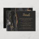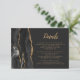 Le bord gauche de cette élégante carte d'enceinte de détails mariages moderne comporte une bordure d'aquarelle noire ornée d'une parties scintillant en faux or. Le titre est dans un script de brosse moderne, avec le texte personnalisable ci-dessous en police sans serif couleur or sur un arrière - plan non noir. L'envers est assorti d'un design d'agate noir et or.