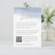Conçue pour coordonner avec notre collection de faire-part de mariage Ebb Tide, cette carte de détails mariage simple et chic comporte du lettrage gris sur un arrière - plan blanc avec un lavage d'aquarelle bleu côtier en haut. Customisez le code QR pour permettre aux clients de scanner et RSVP facilement. Un look élégant et intemporel pour votre mariage d'été.