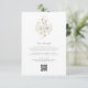 Cette simple carte de détails de mariage monogramme présente de belles fleurs pressées couleur rose vif, bleu poussiéreux et vert sauge peintes à la main avec un code QR pour la personnalisation.