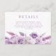 Carte D'accompagnement Détails du Mariage Floral de la lavande violette d