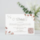 Elégante carte d'enceinte de détails de mariage avec un design floral moderne en terre cuite aux accents monogrammes. Idéal pour partager les informations sur l'hébergement, les codes QR et les détails du site Web du mariage avec les clients. Un ajout élégant et coordonné à votre suite de papeterie mariage.
