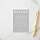 Carte D'accompagnement Détails du Mariage gris et blanc