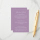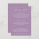 Elégant mariage lilas détails carte de boîtier avec script de calligraphie chic et texte entièrement personnalisable.