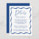 Complétez votre suite mariage avec notre carte de détails de mariage moderne Wavy Frame. Présentant le même design rétro que notre collection d'invitations, cette carte présente un cadre bleu ondulé entourant vos détails mariages importants tels que les détails de la salle de mariages, les chambres d'hôtel, les itinéraires et le site Web des mariages.
