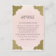 Cette carte de détails mariage rose vif est la pièce de coordination parfaite pour votre élégante suite de mariage. Doté d'un arrière - plan d'aquarelle douce aux fleurs dorées dans chaque coin, cette carte offre des informations essentielles sur l'hébergement dans une police serif raffinée. L'en-tête "Details", de style calligraphie moderne, apporte une touche élégante, créant un parfait mélange d'élégance classique et de design contemporain. Idéal pour partager les instructions de réservation d'hôtel, les liens vers le site Web ou les informations de voyage avec vos invités.