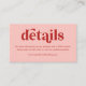Carte D'accompagnement Détails du Mariage rouge et rose