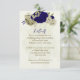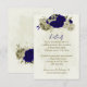 Belle réception romantique détails de mariage carte d'enceinte avec fleurs bleu et beige royales et quelques feuilles. POUR PLUS DE PRODUITS CORRESPONDANTS cliquez sur la collection ci-dessus ou contactez-moi