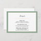 Cette carte de boîtier de détails mariage présente un design minimal. L'arrière - plan est blanc avec la bordure vert sauge et or. Le design est accentué avec de beaux textes de script. Donnez à votre invité mariage toutes les informations supplémentaires nécessaires pour votre jour de mariage.
