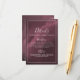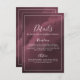 Cette carte de détails minimaliste de mariage présente un arrière - plan d'aquarelle rouge merlot ou bordeaux avec des polices blanches et un cadre simple en ligne blanche à l'avant et à l'arrière. Cette carte comprend des détails essentiels sur la réception, l'hébergement, les voyages, les vêtements, et plus encore. En toute simplicité et élégance, il assure à vos invités une bonne information pour votre soirée magique. Le texte est présenté dans un mélange de typographie de script de calligraphie et une police serif classique. Le design simple et élégant s'intègre parfaitement à tout thème mariage, qu'il soit traditionnel, classique ou moderne. Il fonctionne particulièrement bien pour l'automne ou le mariage de automne, mais peut aussi être adapté à n'importe quelle saison, ce qui le rend parfait pour le printemps, l'été, l'hiver ou n'importe quelle période de l'année. Les couleurs chic de l'aquarelle bijoux et de la police blanche et arrière - plan peuvent être customisées selon vos préférences. Son élégance sobre en fait un choix polyvalent pour votre journée spéciale. Simple Design élégant Elégant Burgundy Watercolor Mariage Détails Card.
