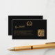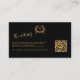 Il s'agit d'une carte d'enceinte élégante, formelle et classique, crête botanique et monogramme de détails mariage dans une romantique couleur noir et or. Il a un code QR pour les détails de votre site Web