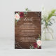 La carte de détails de mariage bohème florale en bois rustique présente des graphiques floraux peints à la main à l'aquarelle / roses dans des tons riches de bourguignon, rouge marsala et rose saumon / pêche et une police de style lettrage manuscrit charmant avec un cadre géométrique moderne et des confettis / paillettes sur fond en bois. Veuillez me contacter pour toute aide à la personnalisation ou si vous avez besoin d'un autre produit avec ce design.