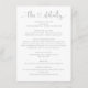 La carte de boîtier mariage comprend "The Details" dans le script de calligraphie moderne avec un accent de coeur mignon ainsi que tous les détails d'information mariage que vous souhaitez inclure. L'écriture peut être entièrement personnalisée pour répondre à vos besoins et le texte gris argenté et la couleur arrière - plan blanche peuvent être modifiés pour correspondre à votre jeu de couleurs mariage.