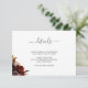 Elégante carte d'insertion de faire-part de mariage classe avec un coin chic bordeaux et rouillé orangé floral et un script tendance sur un arrière - plan blanc clair ++++++++++ Personnalisez-la avec des informations importantes que vos invités ont besoin de connaître leur participation à votre cérémonie de mariage et réception et envoyez la carte avec votre faire-part de mariage.