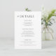 Elégant simple noir et blanc détails mariage invitation insérer carte avec un script de typographie audacieux et le nom de mariée et de mariée initiales monogramme sur le côté arrière.