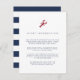 Conçue pour se coordonner avec notre collection de mariage nautique « mix and match », cette carte d'information pour les invités au style côtier élégant présente des lettres en bleu marine accentuées d'une petite illustration de homard rouge en haut. Remplacez le texte d'exemple par les détails clés de votre célébration de mariage.