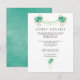 Cartes de détails pour les invités de mariage personnalisables avec des roses vert menthe, du feuillage tropical doré et des guirlandes lumineuses selon les spécificités de votre événement.