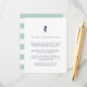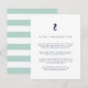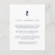 Conçue pour se coordonner avec notre collection de mariage nautique assortie, cette carte d'information pour invités de style côtier chic dans des tons menthe et marine comporte des lettres bleues marine accentuées d'une petite illustration de hippocampe en haut. Remplacez le texte d'exemple par les détails clés de votre célébration de mariage. Les cartes sont réversibles avec de larges bandes horizontales en vert mousse de mer pâle et blanc.