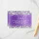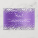 do-it-yourself concevoir une carte plate de boîtier de 5 po x 3,5 po pour partager des détails tels que votre site Web mariage. Créez votre propre enceinte avec une bordure en parties scintillant argent brillant le long du haut et du bas avec un dégradé de lave violet brillant dans l'arrière - plan. La parties scintillant, les étincelles et la brillance dans l'arrière - plan sont des effets créés avec une image numérique.