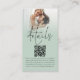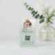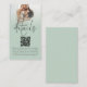 Photo Overlay Script QR Code Mariage Détails de la taille. Petit et pratique à joindre à vos invitations. Invitation vos invités à consulter toutes les informations dont ils ont besoin, telles que l'hébergement et les directions via votre code QR à votre site mariage. Ce design moderne vert sauge avec votre image préférée derrière une couche teinte graduée, a une typographie de set informel en noir pour le titre principal Détails et le reste du texte qui peut facilement personnaliser. Remplacez l'exemple de photo par votre préféré d'orientation du paysage.