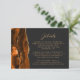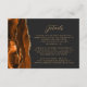 Le bord gauche de cette élégante carte de détails mariage moderne dispose d'une bordure d'aquarelle orange brûlée, recouverte d'une parties scintillant en faux or. Le titre est en script de calligraphie chic, avec le texte personnalisable ci-dessous en police de cuivre couleur or sur un arrière - plan noir ardoise. L'envers est assorti d'une agate orange brûlée et dorée.