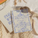 Informations simples et élégantes rétro coloré mariage détails clients. Avec arrière - plan beige crème funky et texte bleu écrit à la main et lunettes de champagne dessinées à la main. Toutes les informations sont personnalisables comme site web, transport, hébergement. Attrapez-le avec d'autres produits de cette suite rétro mariage de classe faite à la main.
